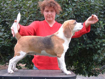 Der Wurf bestand aus 5 Welpen, die per Kaiserschnitt geholt werden mussten. Es waren 3 Rüden, davon 1 Rüde bicolour und 2 Hündinnen. Leider ging dieser Wurf völlig "in die Hose", bis auf eine Hündin waren alle Welpen mit Zahn- oder Hodenfehlern behaftet.