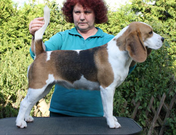 Gina auf der Houndshow Schöningen (24. 05. 2014), Gina war dem Richter leider nur ein 2. Platz wert und das auch noch mit einem SG ! Schade, denn ein SG-Hund ist sie nun wirklich nicht. Im Richterbericht habe ich meinen Hund nicht erkannt.