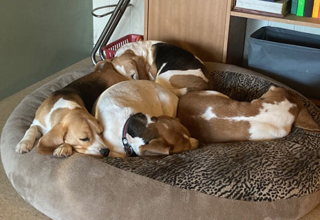 Mitte Februar 2025 haben wir Joselyn für einen Deckakt zum Rüden "Jonathan-Leopold von den Rauener Steinen", einem bicolour-Rüden, gebracht. Nach Mendelchen Gesetzen müsste Joselyn mischerbig auf harepied sein, da ihr Vater diese Farbe trägt. Ihre Mutter allerdings war reinerbig tricolour. Ich wollte es einfach wissen und suchte eben genau für diese Verpaarung nach einem bicolour-Rüden.