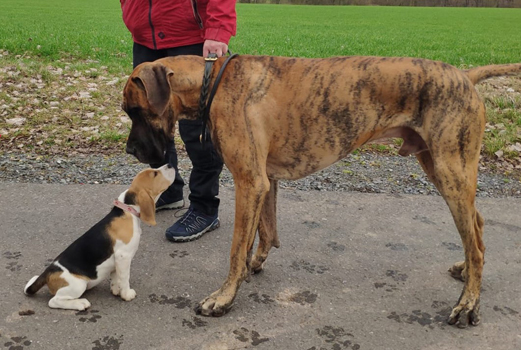 und weiter geht es mit der Sozialisierung; Tiara (14 Wochen alt) bei und mit den Doggen