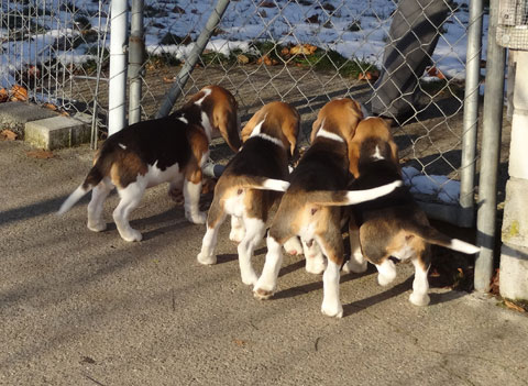 Ich fand den Wurf sehr einheitlich und laut Zuchtwart des Schweizer Beagleclub war der Wurf fehlerfrei. Ich freue mich ;o).
